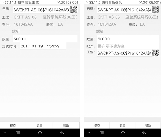 缺料看板生成及确认界面