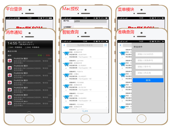 使用移动端实现PC业务流 移动端实现供应商绩效考评报表 移动端点对点实时消息推送 加强语音提示 |