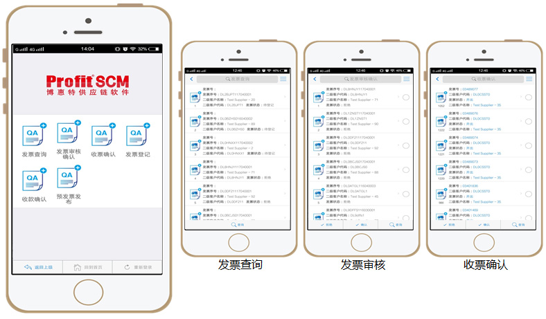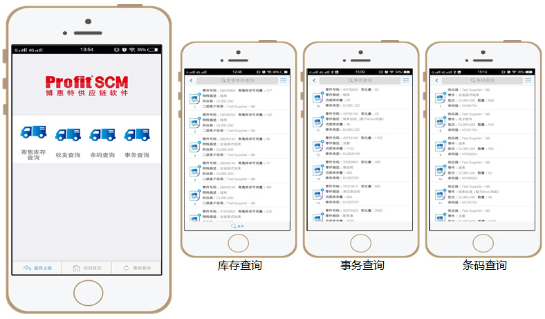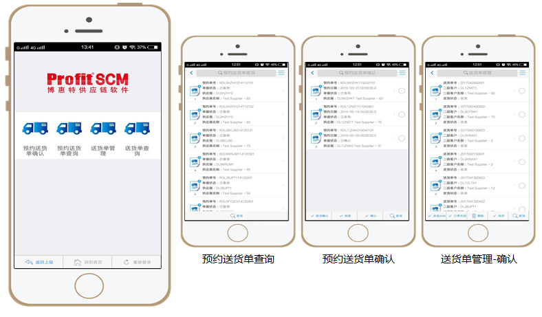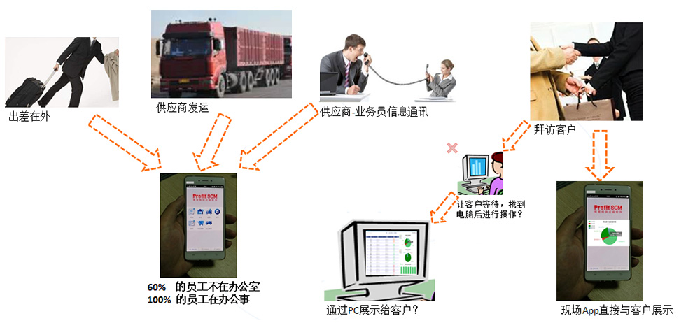 以手持移动终端(包括:以Android、IOS操作系统的手机、IPAD、条码枪等手持终端)为作业平台,围绕采购预示、物流配送、供应商管理、财务开票等核心业务理念实现的App应用。着重解决摆脱PC和WIFI的限制的同时,实现自由办公、实时通讯、快速响应等。